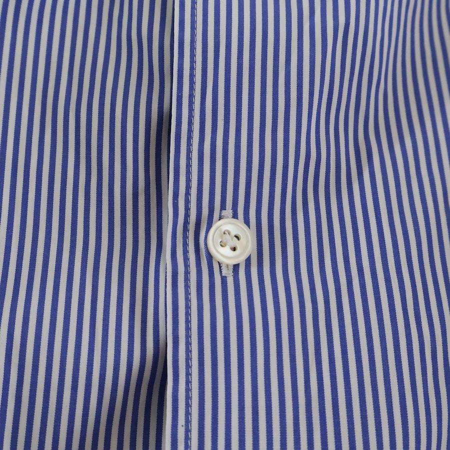 [モデル]ヨーク切替 長袖ストライプシャツ ブルー