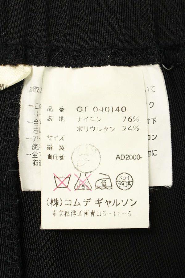 ランク:B (使用感がある商品)状態備考:全体的に擦れや毛羽立ちがありますブランド:コムデギャルソンサイズ:-色:ブラック実寸:ウエスト幅27cm 股上23cm ワタリ幅28cm 股下60cm 裾幅14cm重さ:-素材:ナイロン76%、ポリウレタン24%付属品:なしその他特徴:-管理番号:10829-250718-0116