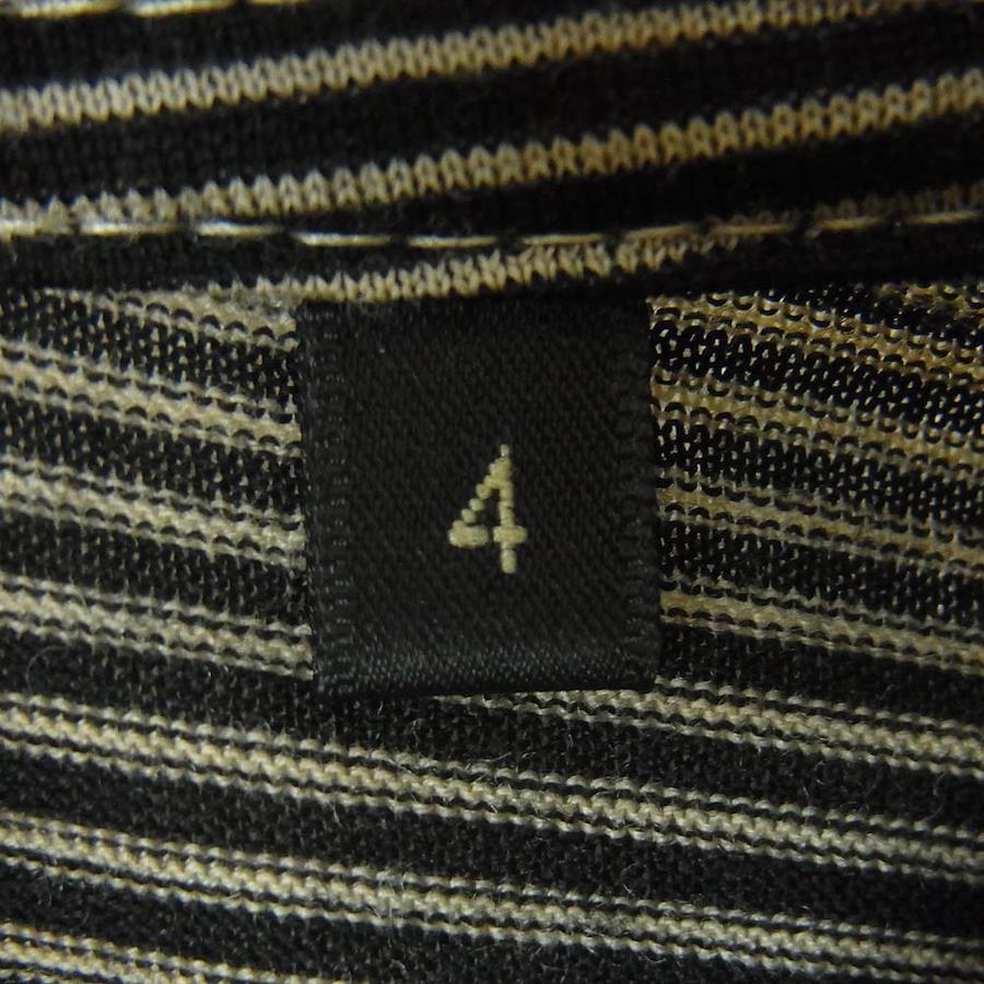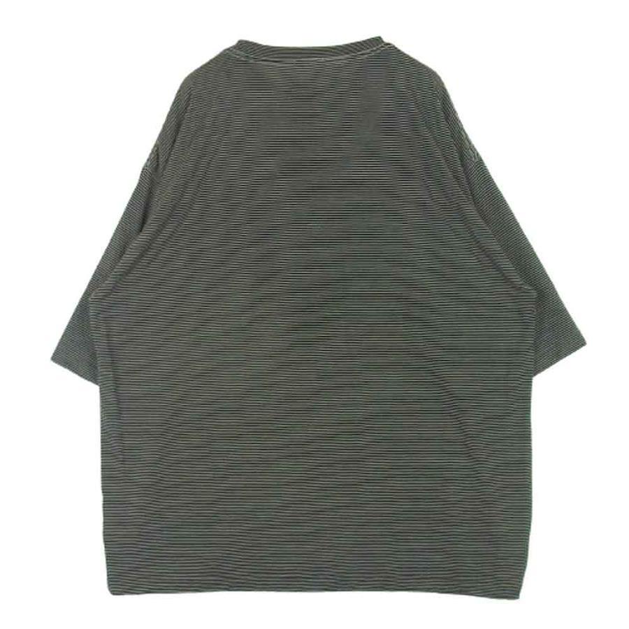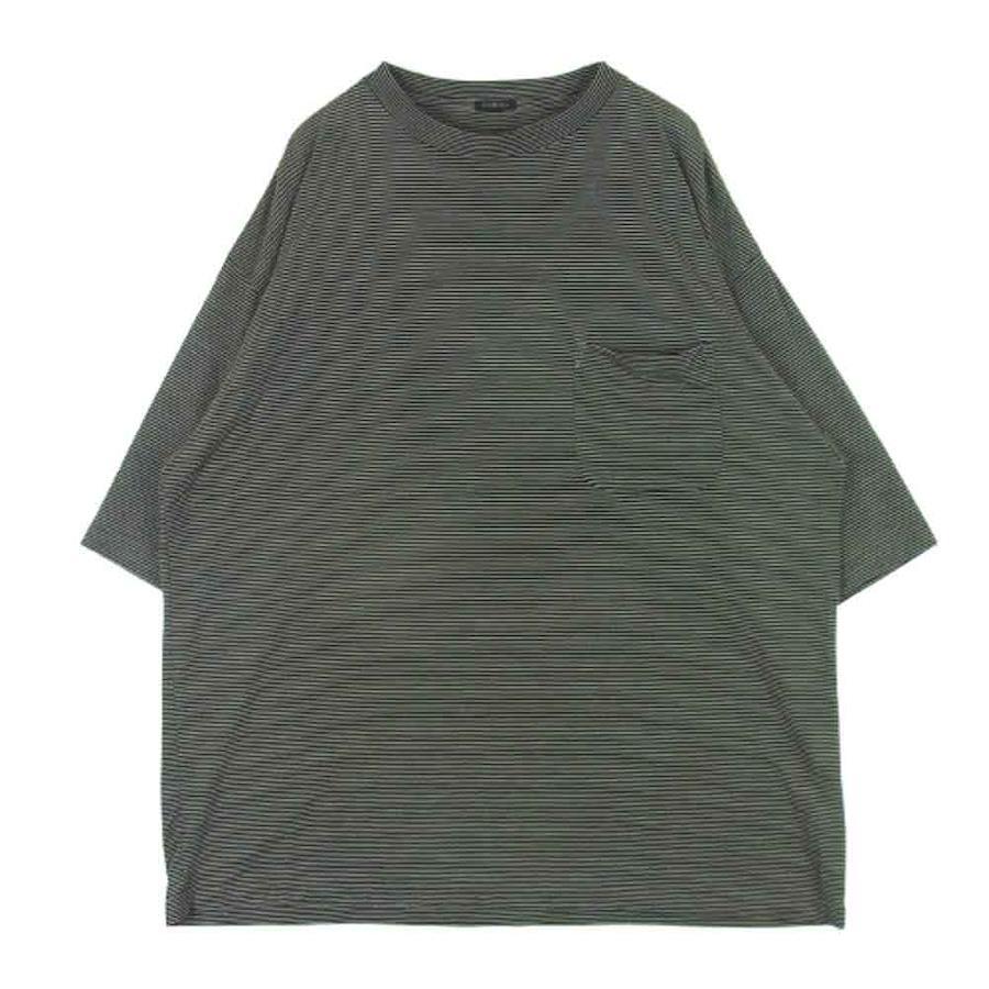 ブラック系 x ベージュ系【モデル】ボーダー サマーウール 半袖 Tシャツ 日本製