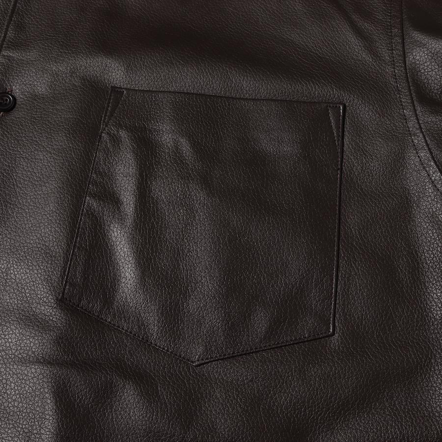 | 商品説明 | ・柔らかくしなやかなシープスキンレザー ・フロント6つボタン ・レギュラーカラー ・コットンフランネル総裏地 ・ラウンドカット |