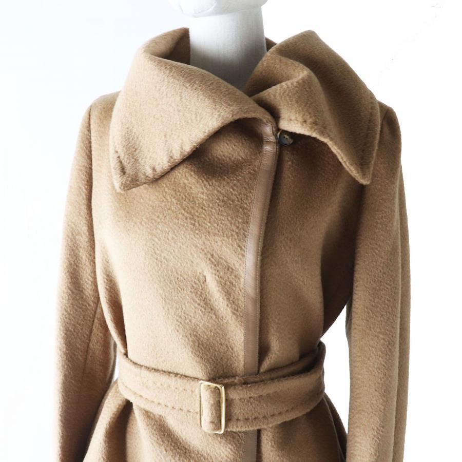 [Constant Review] Excellent Condition◎ Authentic White Tag MaxMara Women's 100% Camel Leather Belted Extra Long Coat, Camel, Size 42, Made in Italy [Pre-owned]