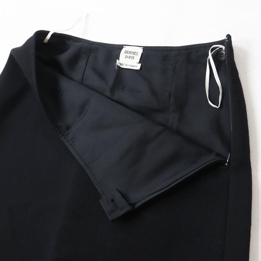 [Constant Review] Excellent Condition◎ Made in France Hermès Women's Wool Knee-Length A-Line/A-Loop Skirt, Black, Solid Color, Size 34, Simple◎ [Pre-owned]