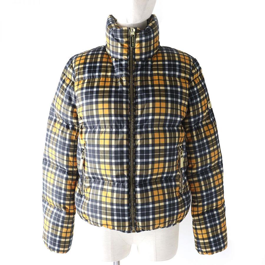 [Constant Review] Excellent Condition △ Authentic MICHAEL KORS JF92HY8CTW Checkered Down Jacket with Logo Hardware, Stand Collar, Short Length, Women's, Yellow, Size S [Pre-owned]