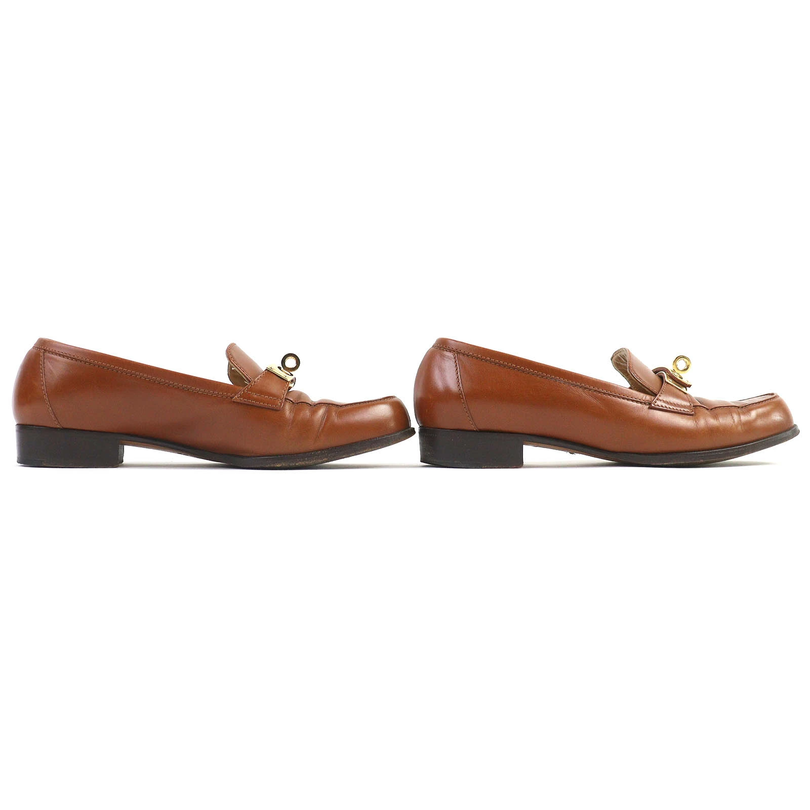 [Constant Review] Excellent Condition △ HERMES Vintage Gold Hardware Kelly Leather Loafers, Brown, Size 36.5, Comes with Dust Bag, Made in Italy, Women's [Pre-owned]