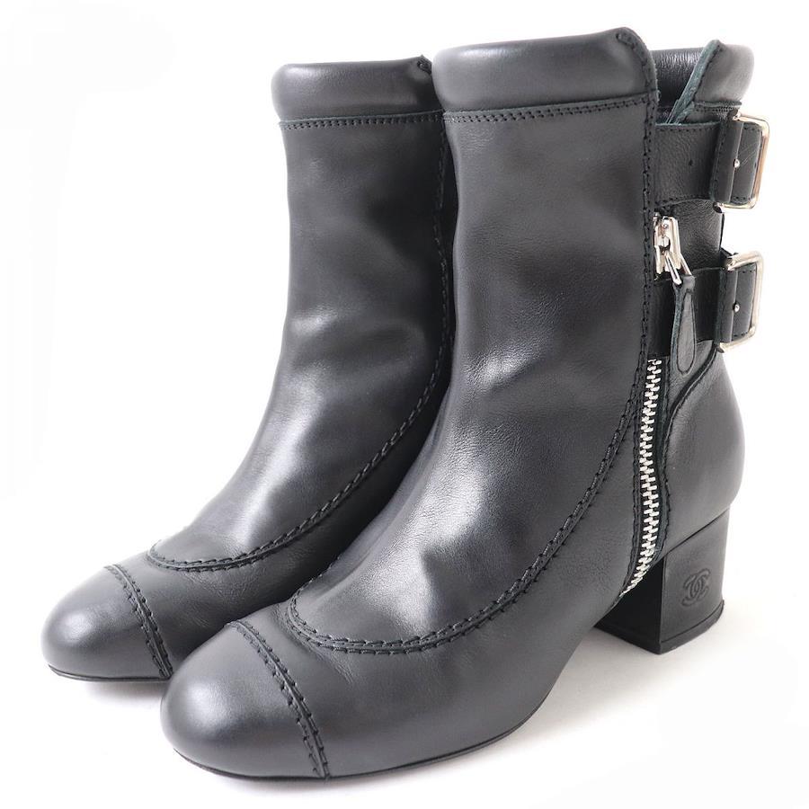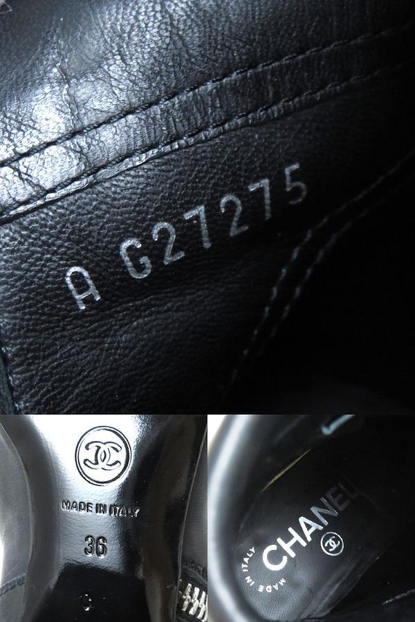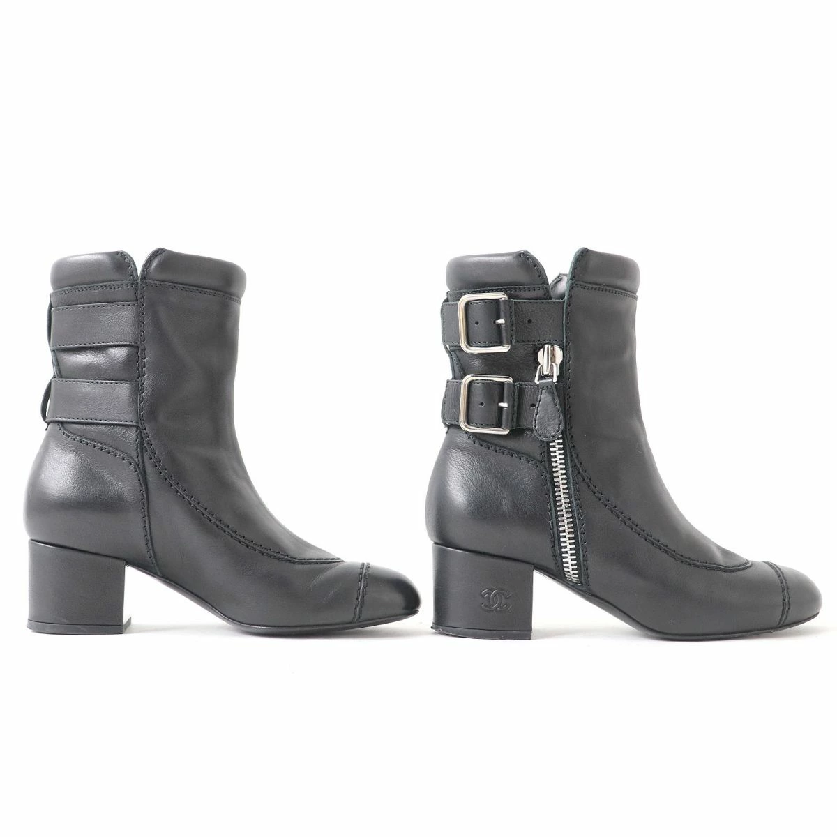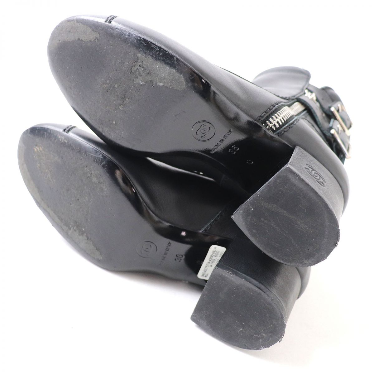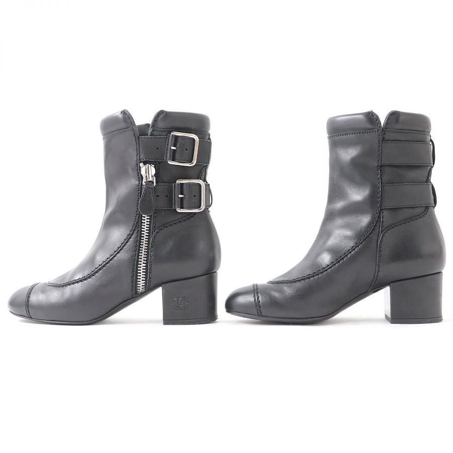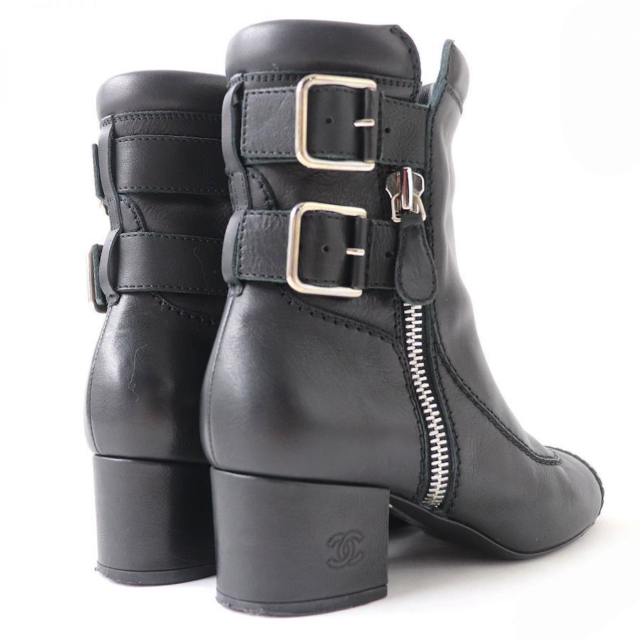 [Constant Review] Excellent Condition △ Italian-Made CHANEL G27275 Coco Mark Embroidered Double Strap Side Zip Leather Short Boots Black Size 36C Women's [Pre-owned]
