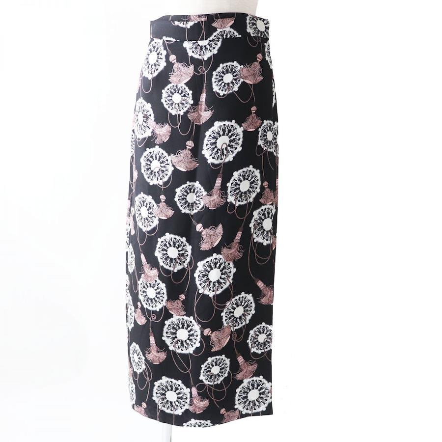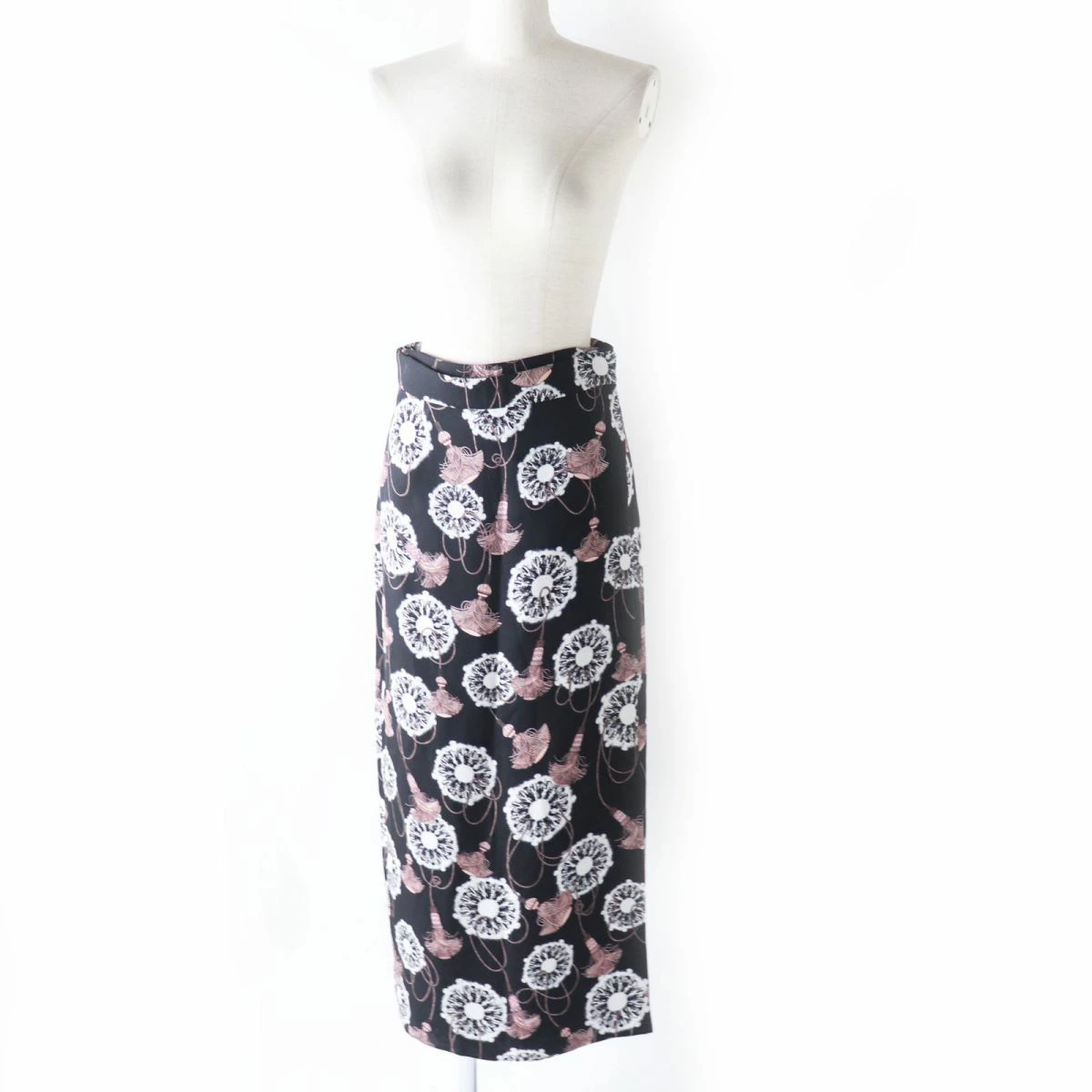 [Constant Review] Excellent Condition ◎ Authentic 2022SS HERMES liquetis Aquarelle Long Wrap Skirt 2E0312DZ Black x White x Pink All-Over Print Size 36 Made in Italy [Pre-owned]
