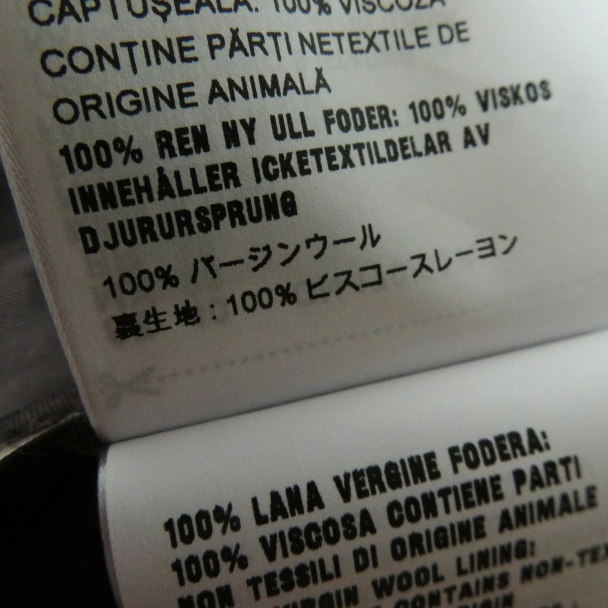 | 素材 (material) | 表地:バージンウール100% 裏地:ビスコース(レーヨン)100% | ||||||||||||||||