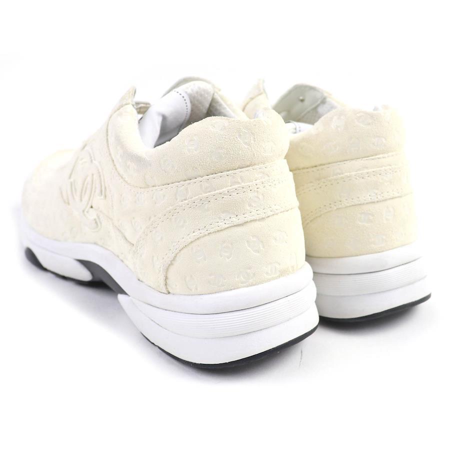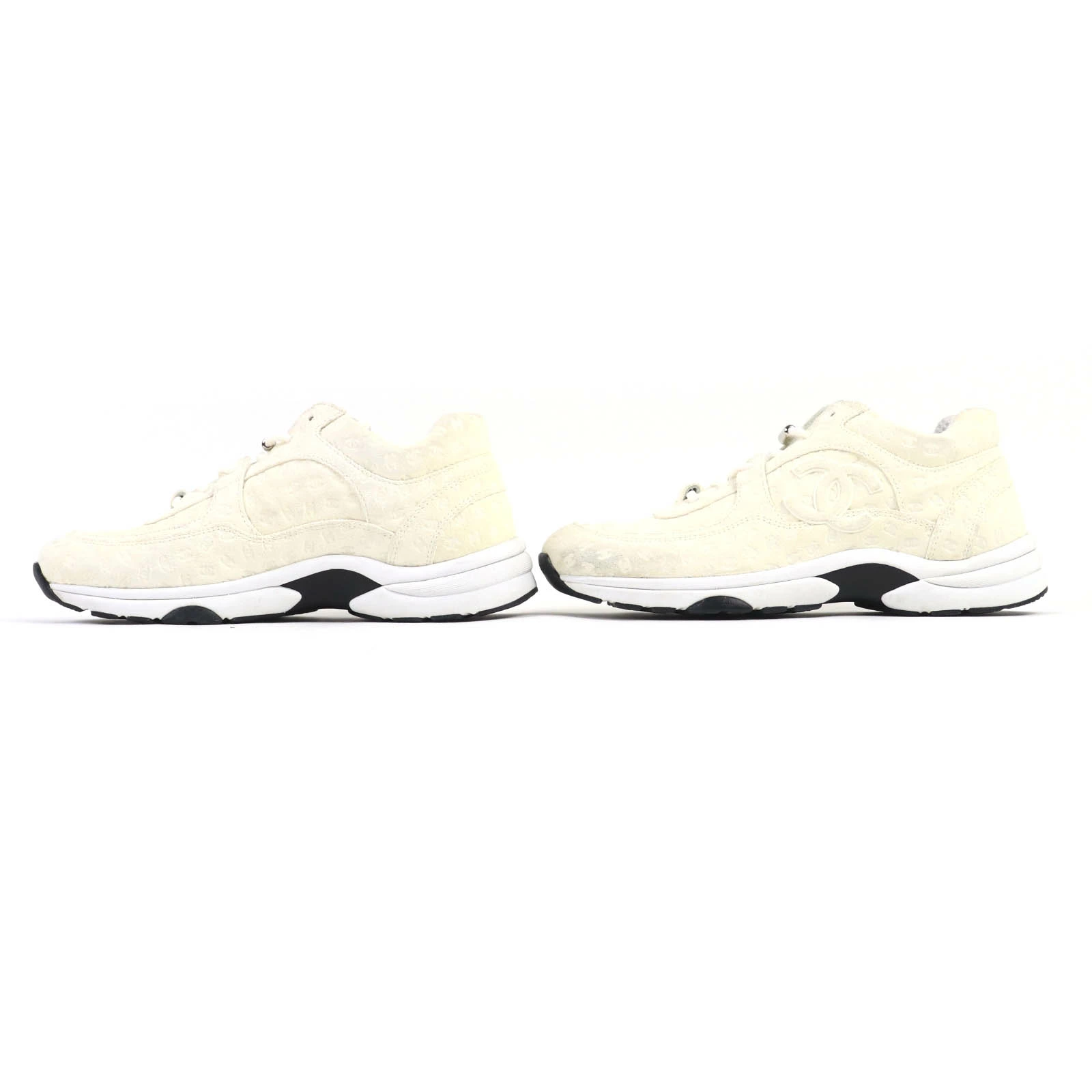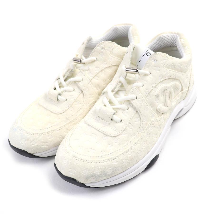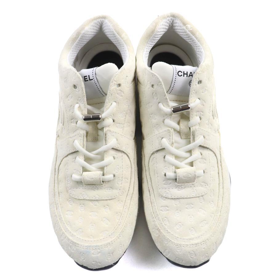 [Constant Review] Excellent Condition CHANEL G39230 All-Coco Mark Suede Leather Sneakers, Off-White, Size 39, Made in Italy, Women's [Pre-owned]