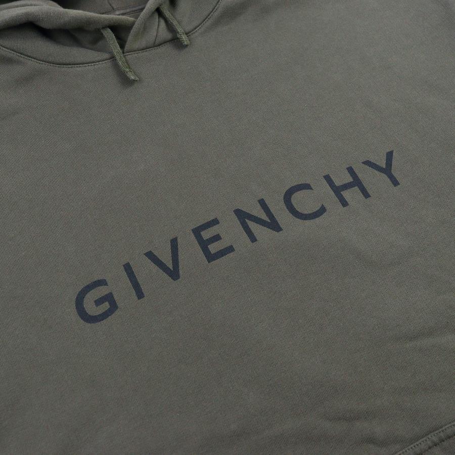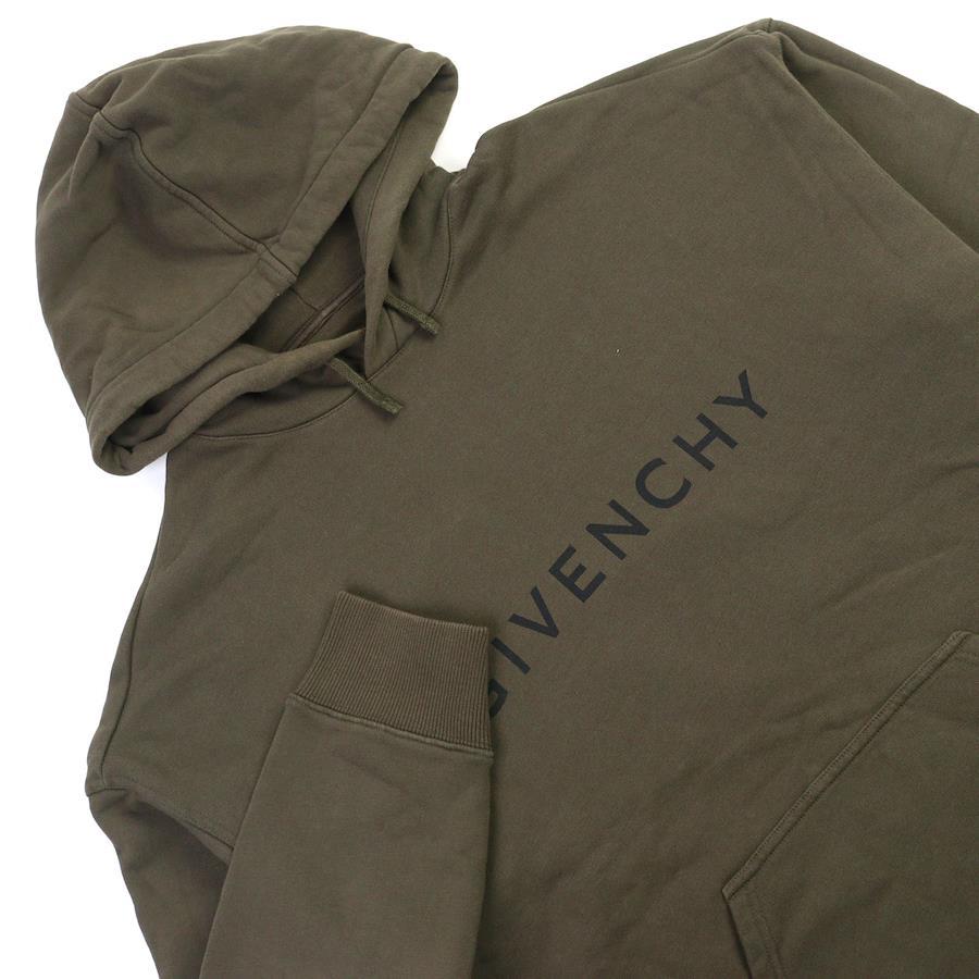 [Constant Review] Excellent Condition GIVENCHY BMJ0HC3YAC 100% Cotton Logo Print Pullover Slim Fit Hoodie Khaki Green Size L Authentic Men's [Pre-owned]