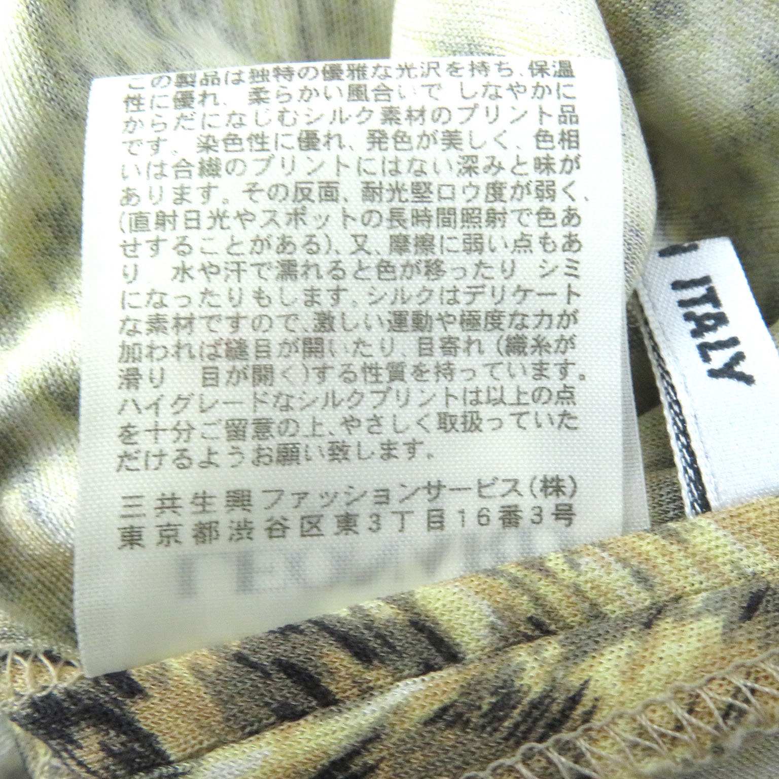 | 素材 (material) | 本体:シルク100% | ||||||||||||||||