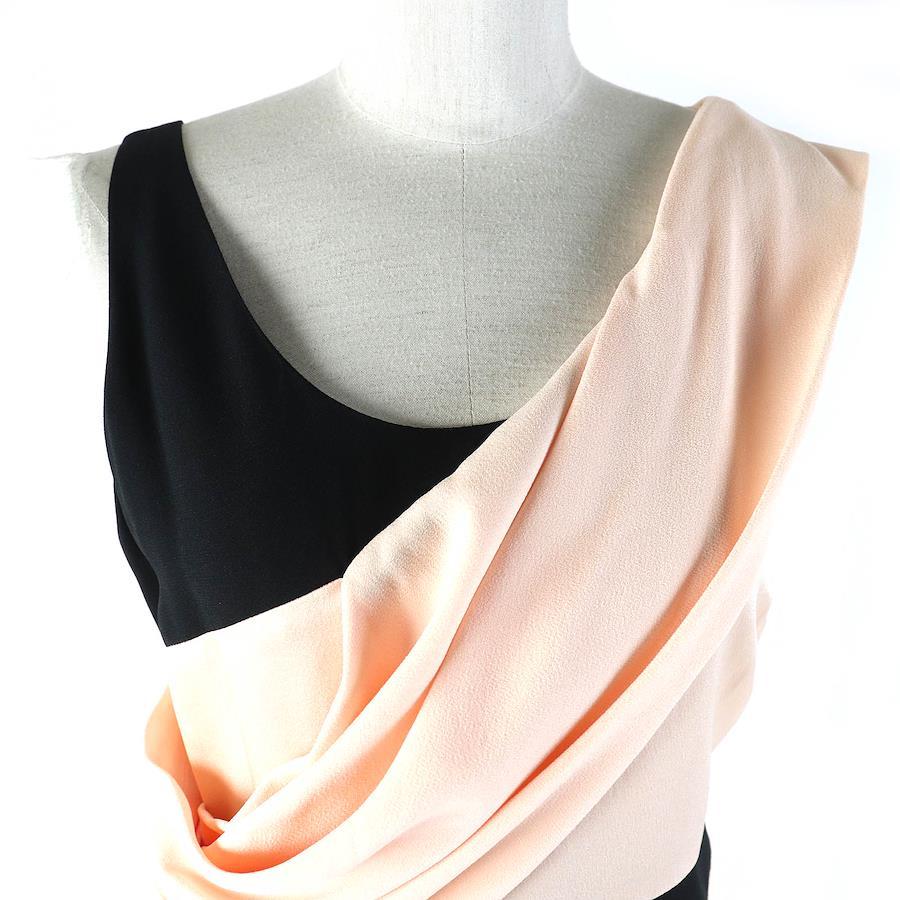 [Constant Review] Unused LANVIN Two-Tone Sleeveless Dress, 100% Silk Lining, Pink Beige, Black, Size 36, Made in France, Authentic, Women's, Recommended◎ [Pre-owned]