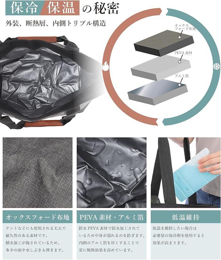 内部は3層構造で、厚手のアルミ箔が高い保冷・保温力を発揮し、食材を新鮮なまま持ち運べます。