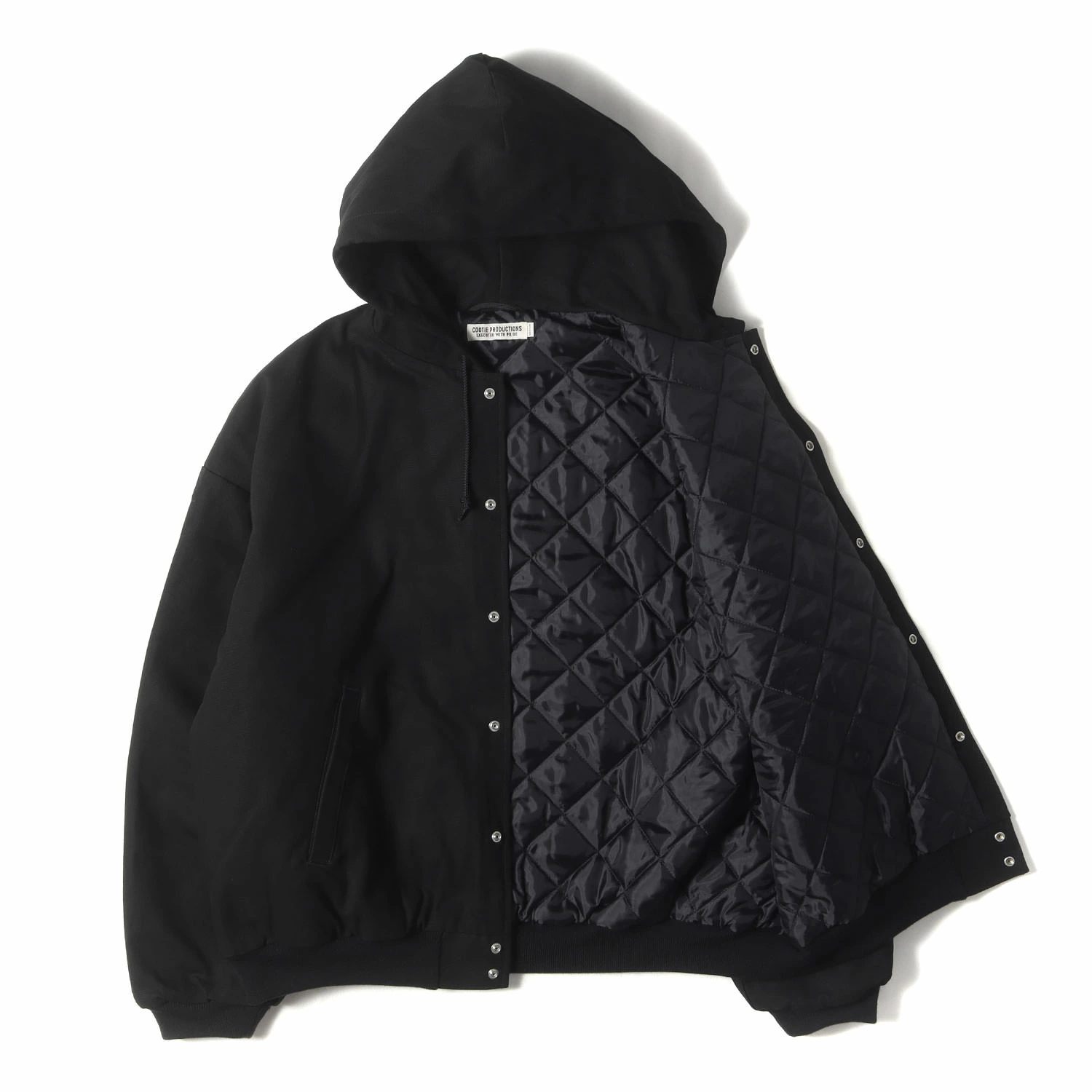 | 商品説明 | コットンオックス(ダック)生地を使用し、裏地をキルティングであしらったワークジャケットです。胸と背面に同色のブランドロゴ刺繍をデザインしたワイドシルエットの一枚になります。 |