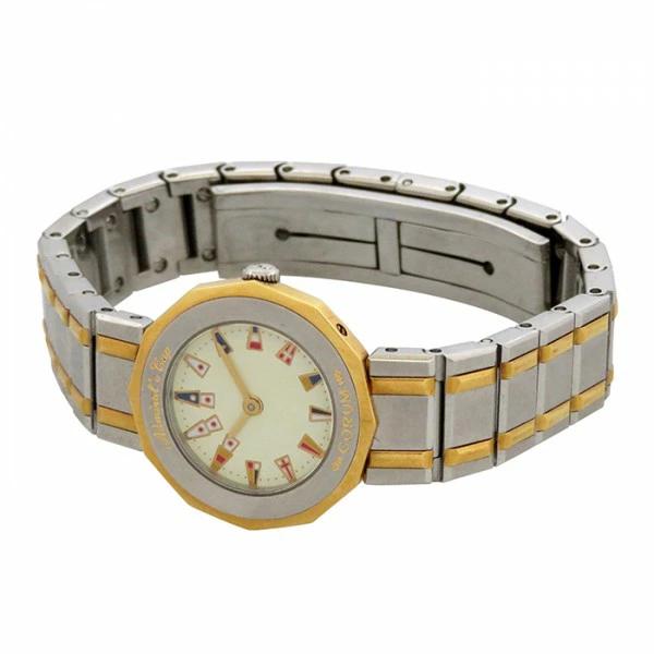 お問い合わせ商品IDW130726ブランドコルム商品名コルム CORUM アドミラルズカップ アイボリー文字盤 中古 腕時計 レディース型番W130726文字盤色アイボリー文字盤種-素材ステンレスイエローゴールドサイズケースサイズ: 22.0mmムーブメントクォーツ防水非防水当店保証ご購入日より1年付属品ゆきざきボックス商品状態[ 中古 ]大きな目立つ傷はございませんが、中古品につき全体的に多少の小傷がございます。※詳細はお問い合わせください。商品説明アドミラルズカップとは、イギリスのセーリング・クラブであるロイヤル・オーシャン・レーシング・クラブの会員メンバーによって1957年より開始された外洋航海ヨットレースのことで、1か国3艇でチームを組み競争する伝統ある航海レースの一つです。2003年に最後となったこのヨットレースは今でも多くの人々の心に熱き情熱を感じさせてくれます。そんなレースの名前を冠し、作られた時計が「アドミラルズカップ」になります。熱心なファンが今でも多い時計です。そのスピリットは現在にも受け継がれ今はアドミラルというモデルに集約しています。ご注文・ご来店前にご確認くださいませご来店購入をご希望の場合は、ご来店前に在庫の確認をお願いいたします。当サイトの商品は、実店舗でも販売しておりますので、あらかじめ在庫のご確認をお願いいたします。売り切れの際はご注文をキャンセルさせていただきます事ご容赦くださいませ。流通事情などにより付属品の一部がご提供できない場合がございます。商品によってはマイナーチェンジなどにより、掲載画像と現物に差異がみられることがございます。ご使用のパソコン環境により、掲載画像と現物の色合いに若干差異がみられることがございます。予告なく価格が改定される場合がございます。返品について通信販売にてご購入いただきました商品は、品質・梱包に万全を期しておりますが、万が一ご到着時に破損・不具合がございましたら2日以内にご連絡をお願いいたします。未使用の場合に限りご返金させていただきます。なお、上記以外の理由やお客様都合、ご使用済みの商品のご返品はお受けいたしかねます。