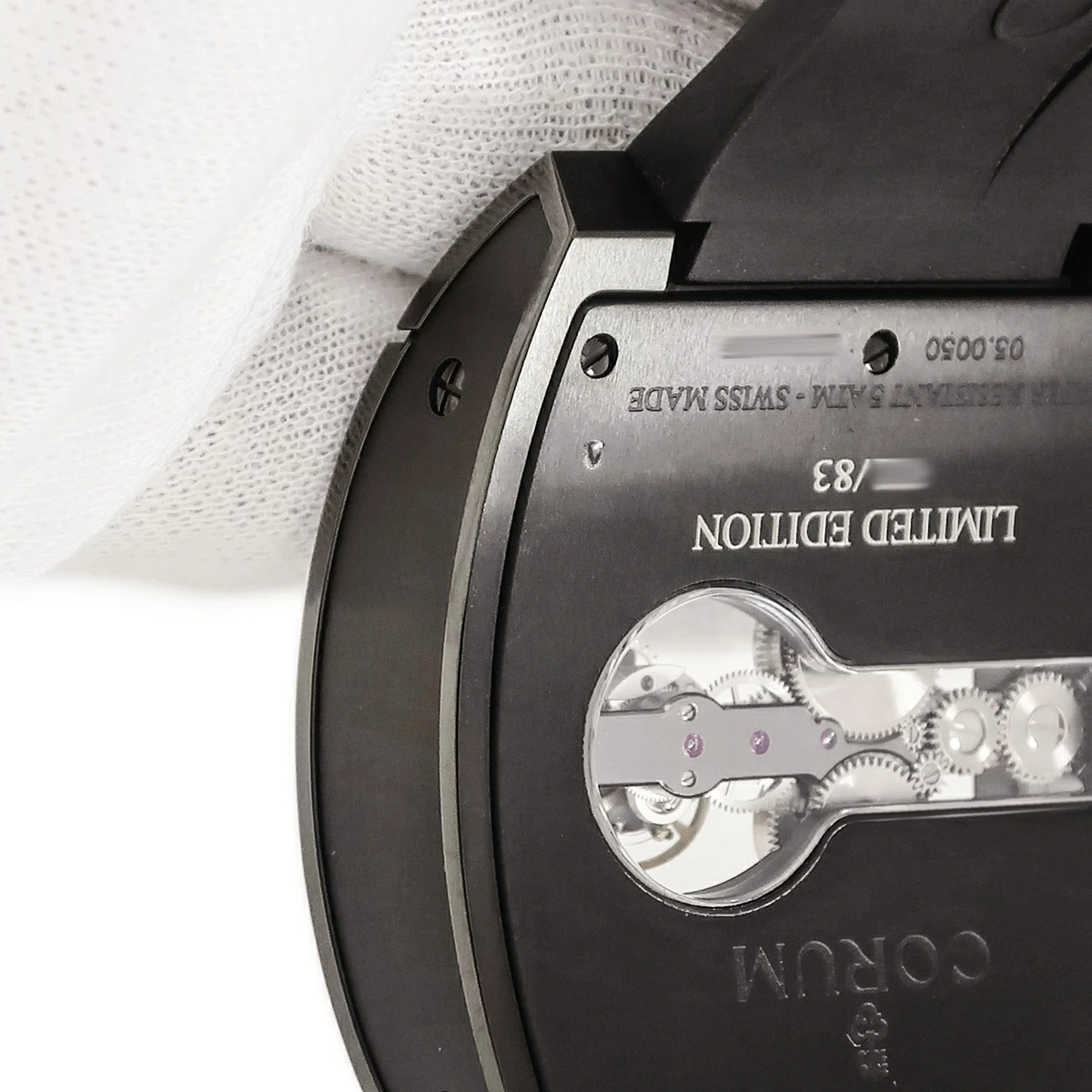 コルム CORUM ティーブリッジ トゥールビヨン B022/00936 OH済 スケルトン ブラックPVD加工 トノウ 限定 メンズ 腕時計手巻き ブラック 【中古】【店頭受取不可】