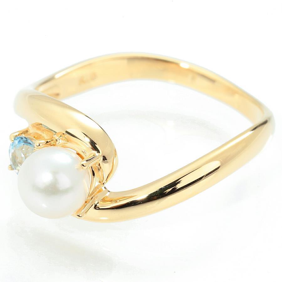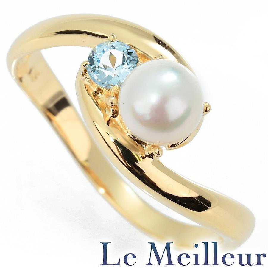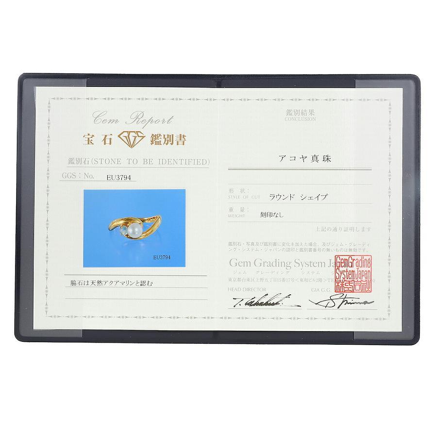 Courreges Akoya Pearl Ring, 5.1mm Akoya Pearl, 3ct Aquamarine, 18K Gold, Size 12, Pre-owned