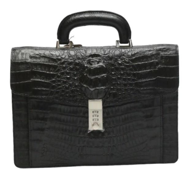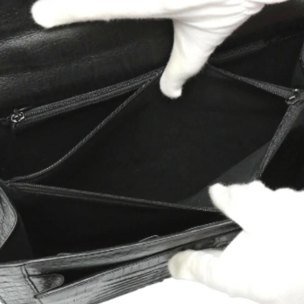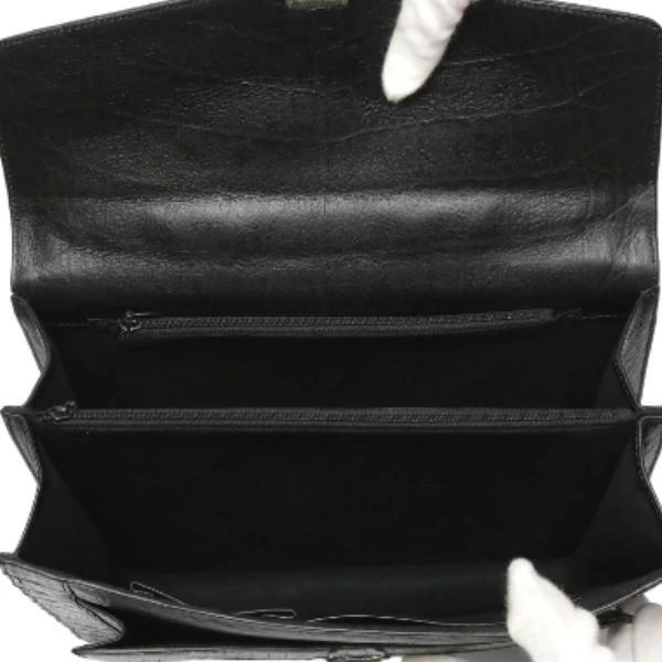 Crocodile CROCODILE Caiman Leather Second Bag in Black [SS]