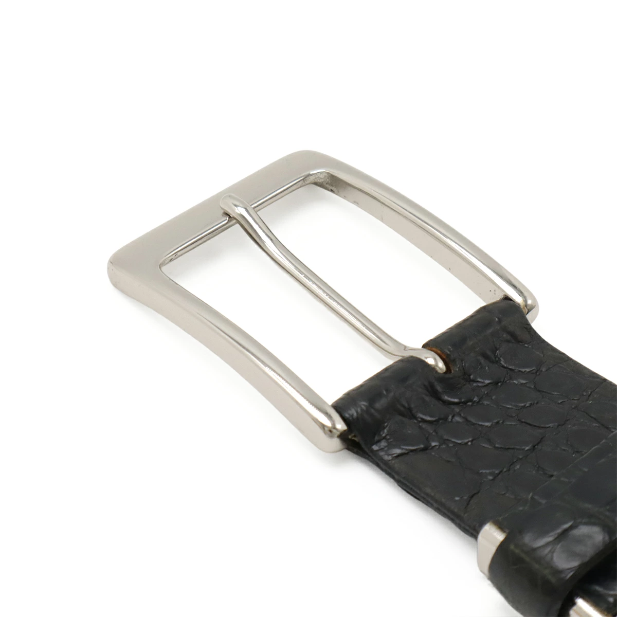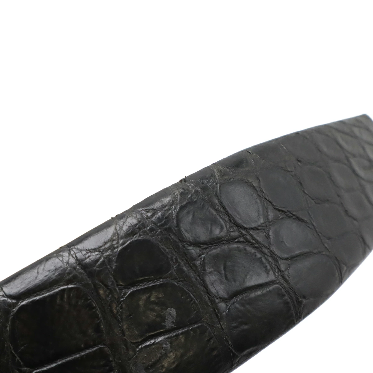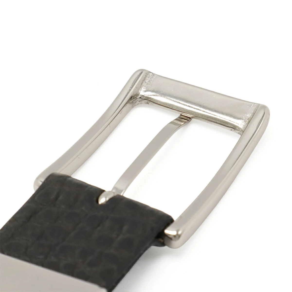 上質なクロコダイルレザーを採用した、重厚感のあるベルトでございます。