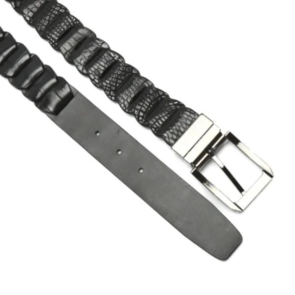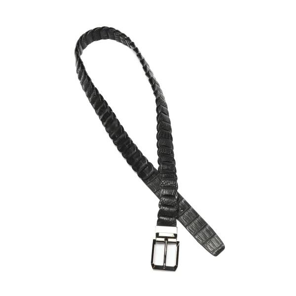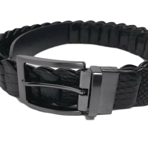 | ベルトCROCODILE ピンタイプバックルニッケル 35mm 編み込み長さ調整可能メンズ LJ-BGブラック |