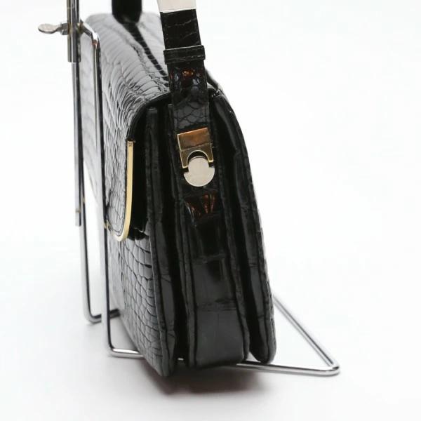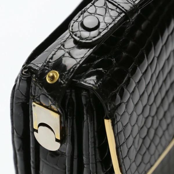 Crocodile shoulder bag, black crocodile shoulder bag [H] [Pre-owned]