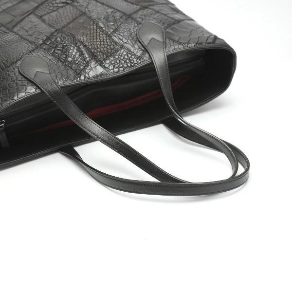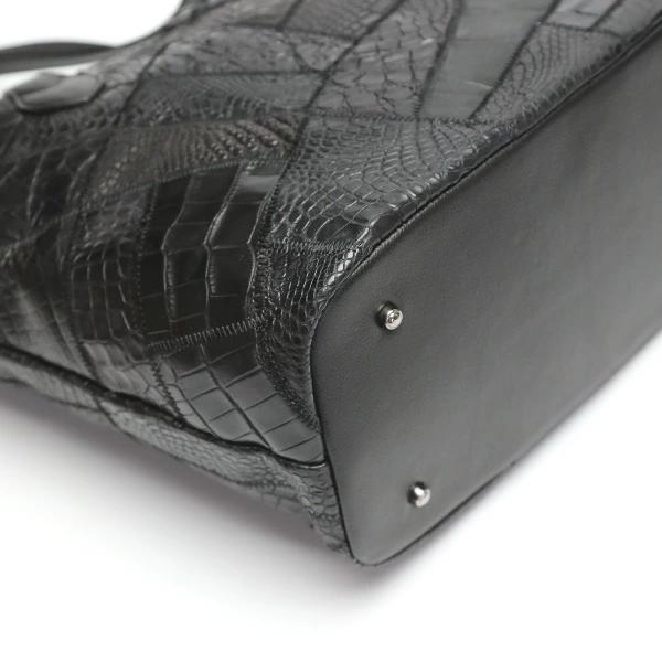 | トートバッグCROCODILE トートバッグパッチワーク 天ファスナーレディース LB-7001ブラック |