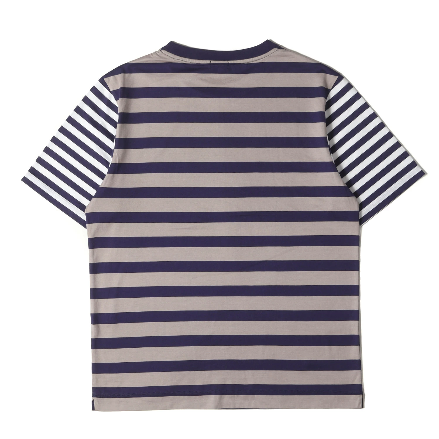 | 商品説明 | ボーダー柄があしらわれた薄手のコットン生地を使用し、スリーブ切り替えデザインで仕上げられたクルーネックTシャツです。 |