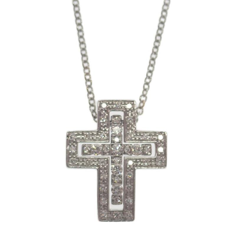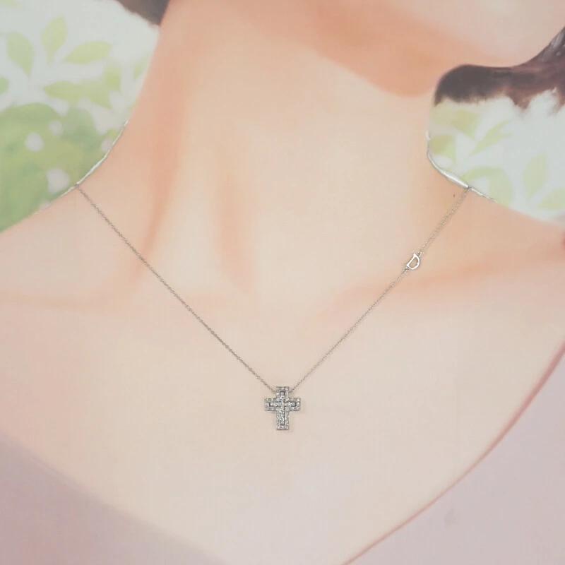 クロスにあしらわれたダイヤモンドが胸元をより美しく彩ってくれます。