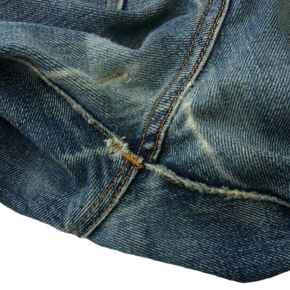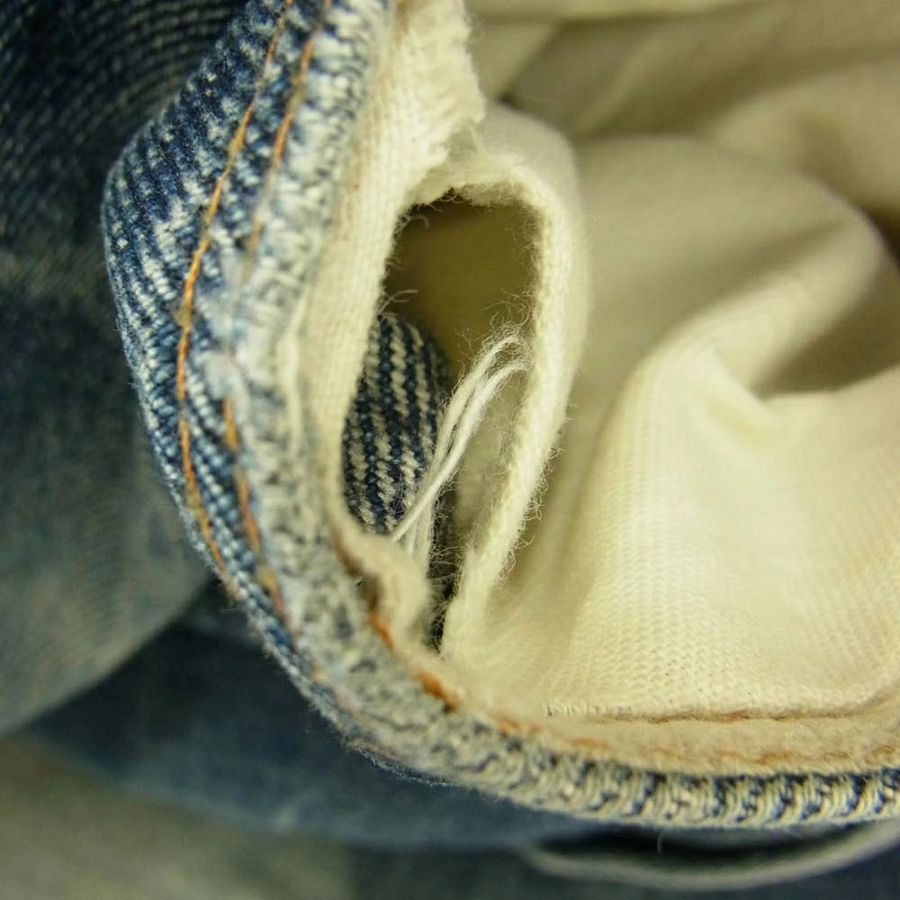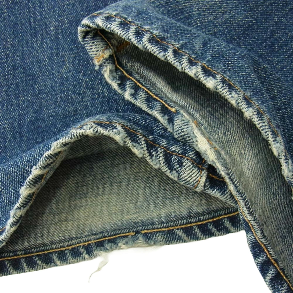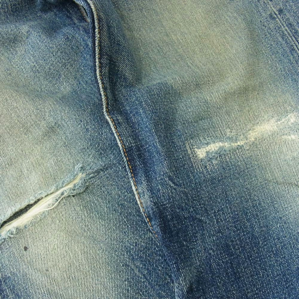 | 特記事項 | ※右ポケット底と股付近に穴がございます。※ダメージ、リペアがございます。※使用に伴う使用感、傷擦れ、素材特有の毛羽立ち、生地アタリ、汚れ、ほつれなどはございます。中古商材にご不安な方、完璧な商品状態をお求めの方はお控え下さい。 ※裾上げされている可能性ありますので実寸サイズをご確認下さいませ。 |
