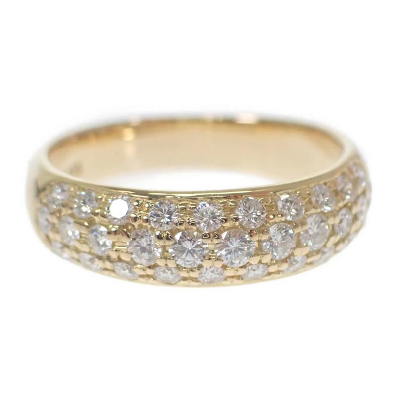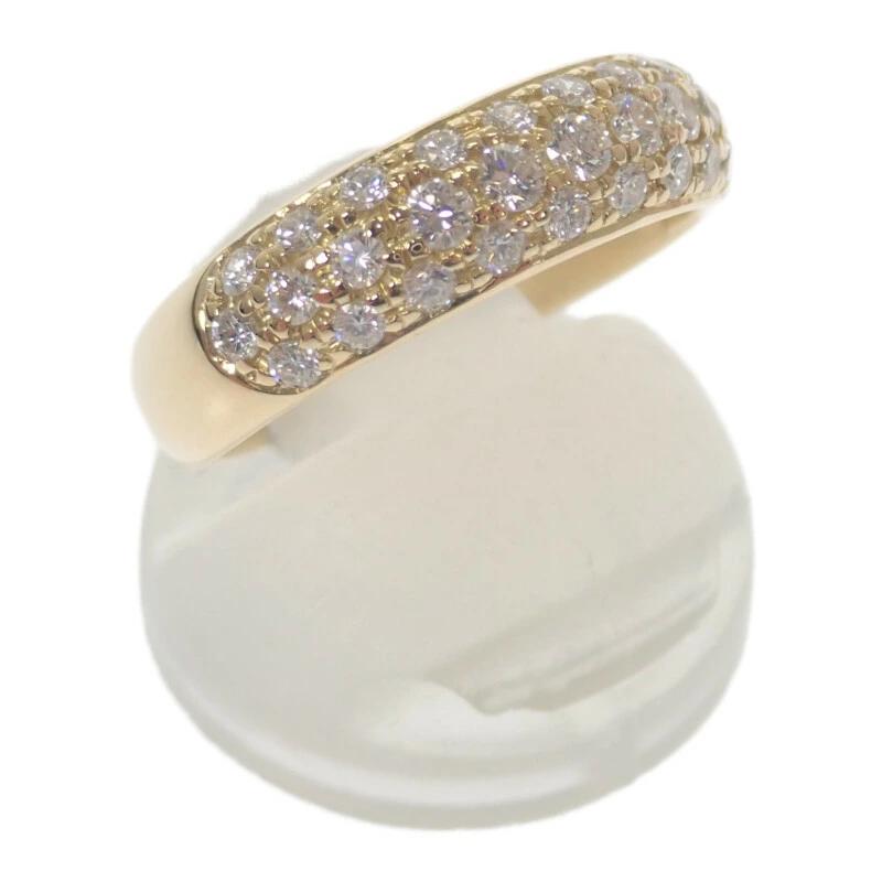 Designer Jewelry Half Pavé Ring, Size 12, K18YG Yellow Gold with Diamonds, Stylish Gift for Women, Pre-owned, N Rank