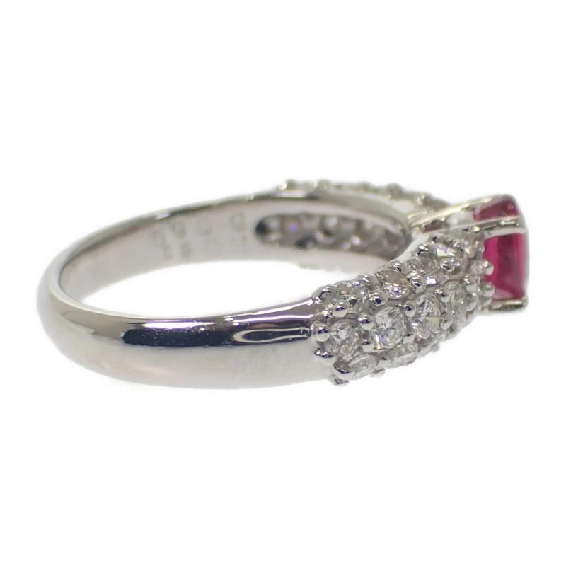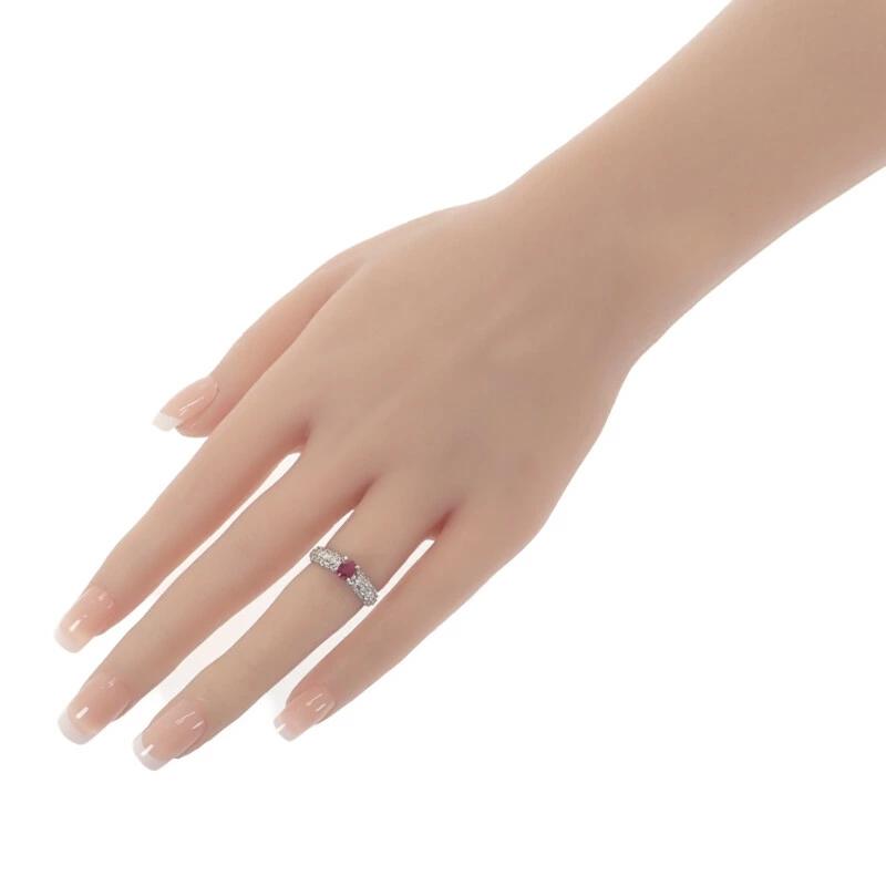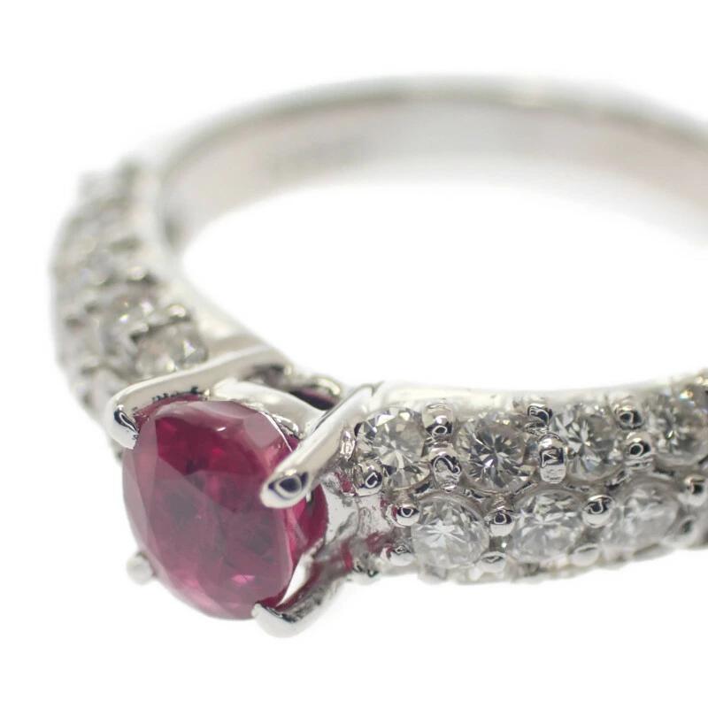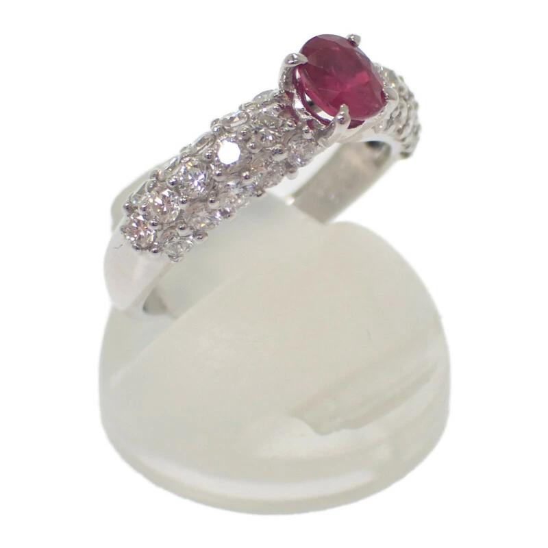 気品漂うプラチナ900をベースに、ルビーとダイヤモンドが贅沢にセッティングされたデザインリングです。