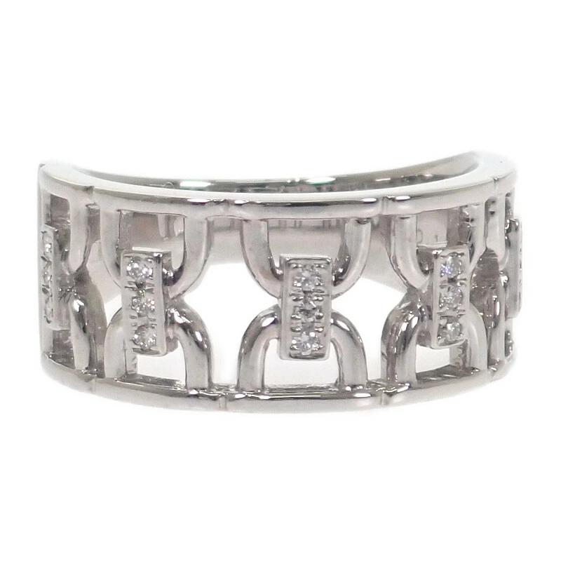 リンクの間にはダイヤモンドがバランスよく配され、ホワイトゴールドのクールな輝きとダイヤの繊細な光が見事に調和しています。