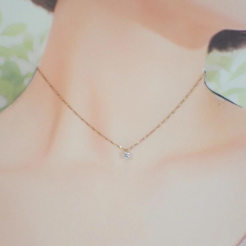 一粒ダイヤモンドが上品に輝くデザインネックレスです。