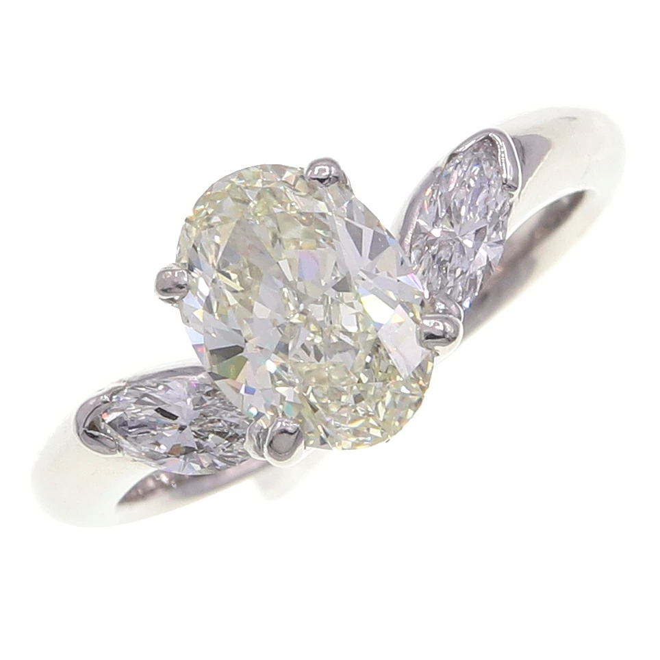 Diamond ring, 1.51ct (YD) and 0.36ct (D) in Pt900, size 11, with certificate. Used platinum jewelry. Women's diamond ring.