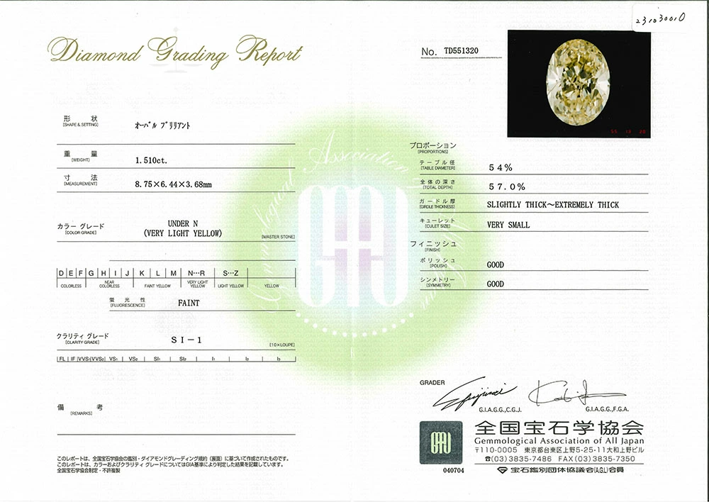 付属品鑑定書(全国宝石学協会)