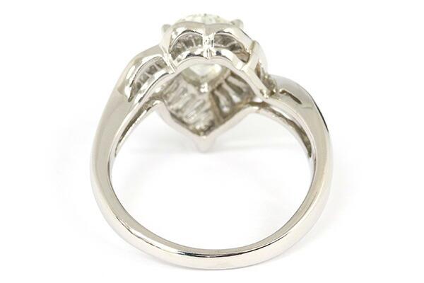状態:【商品状態】プラチナの外・内側ともルーペで薄スレが見られますが、肉眼では気にならない程度です。【石の評価】中石のダイヤモンドはペアブリリアントカットで、カラーは【K】、クラリティは【VS-2】となっております。10倍ルーペで見ると、テーブルに僅かなイ極小のインクルージョンが確認できますが、肉眼では到底見えるものではありません。Kカラーとはいえ、黄色味をそこまで感じるものではありません。脇石のテーパーバゲットカットダイヤモンドは色味も無職でおおよそVSクラスかと思われます。※代金引換対応不可※発送方法は佐川急便となります※海外発送は取り扱っておりません※対応不可