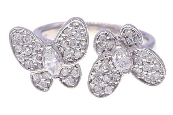 ダイヤモンドリングダブルバタフライモチーフD0.33ctD0.21ctPt9009号中古指輪蝶ジュエリー宝石アクセサリーレディース女性Diamond