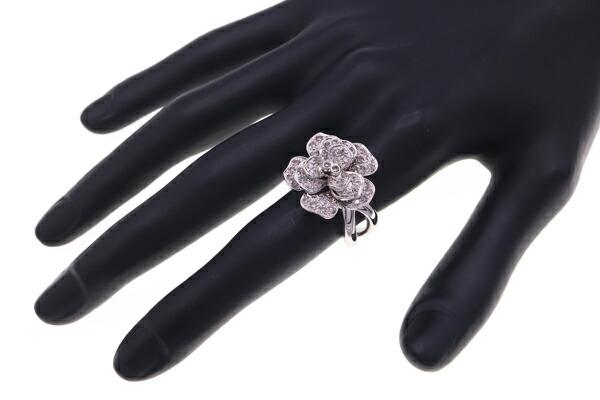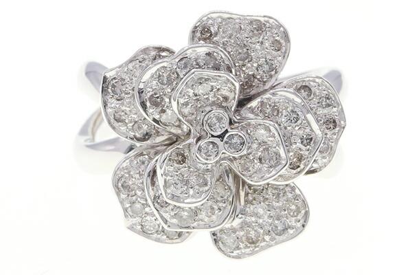 ダイヤモンドリングフラワーモチーフD1.00ct750WG15号中古指輪ジュエリー宝石花レディース女性Diamond