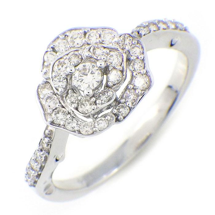 ■商品名【ダイヤモンド】 リング 薔薇モチーフ パヴェ ダイヤモンド 計0.30ct K18WG 13号 【中古】
