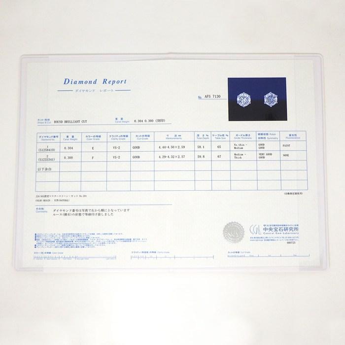 【ダイヤモンド】 ピアス ソリテール ソリティア スタッド ラウンド ダイヤモンド 0.300ct(F/VS2/GD) / 0.304ct(E/VS2/GD) PT900