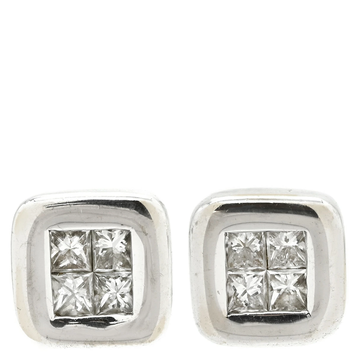 ノンブランド NON BRAND ピアス ダイヤスクエアシェイプ スタッドピアス K18WG ダイヤモンド ホワイトゴールド K18WG Au750 プリンセスカット 両耳用 - レディース 【中古】