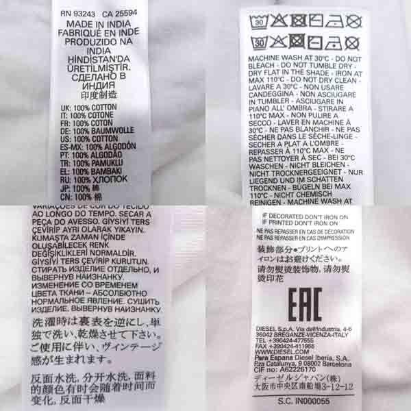 ・メーカー :DIESEL / ディーゼル・製品型番 :T-MIST-E70・サイズ :表記サイズ:XXS,肩幅 (約cm):54,身幅 (約cm):53,着丈 (約cm):77.5,袖丈 (約cm):54,・色(柄)の系統:ホワイト・デザイン :(レディース)トップス/Tシャツ・素材 :綿100%