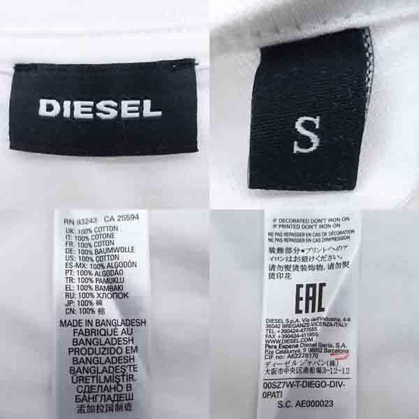 ・メーカー :DIESEL / ディーゼル・製品型番 :00SZ7W・サイズ :表記サイズ:S,肩幅 (約cm):41,身幅 (約cm):50,着丈 (約cm):67,袖丈 (約cm):19,・色(柄)の系統:ホワイト・デザイン :(メンズ)トップス/Tシャツ・素材 :綿100%