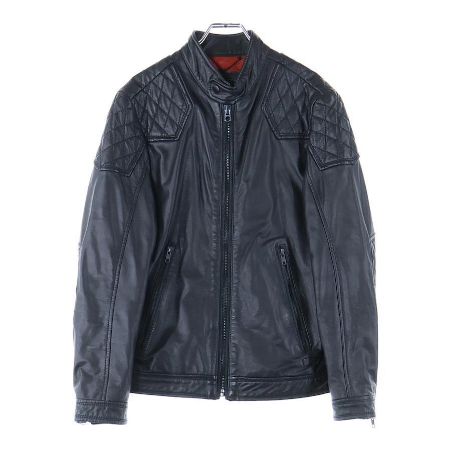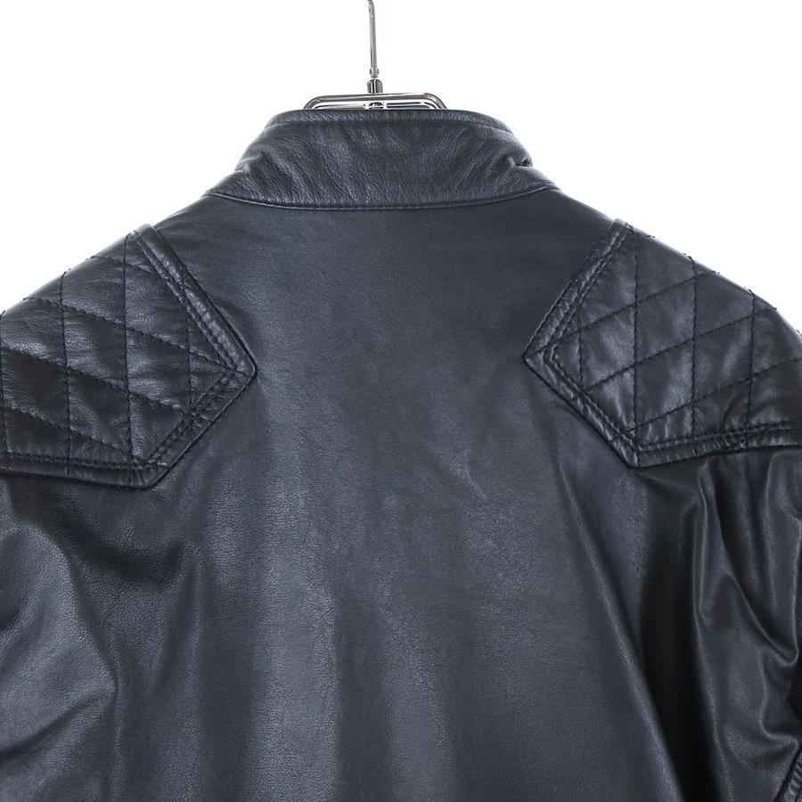 [モデル]Cowhide Leather Jacket キルティングショルダーデザイン ジップアップ カウレザージャケット ライダースジャケット ブラック 00E8F202
