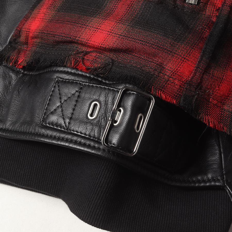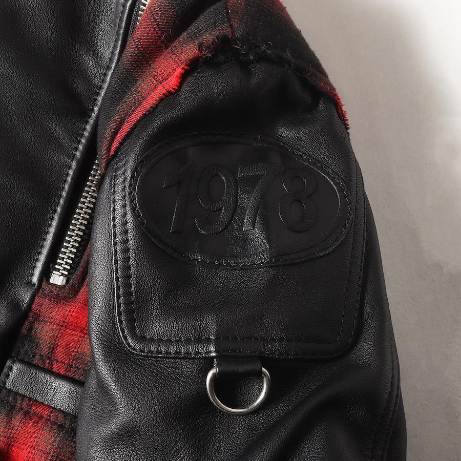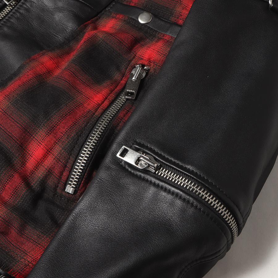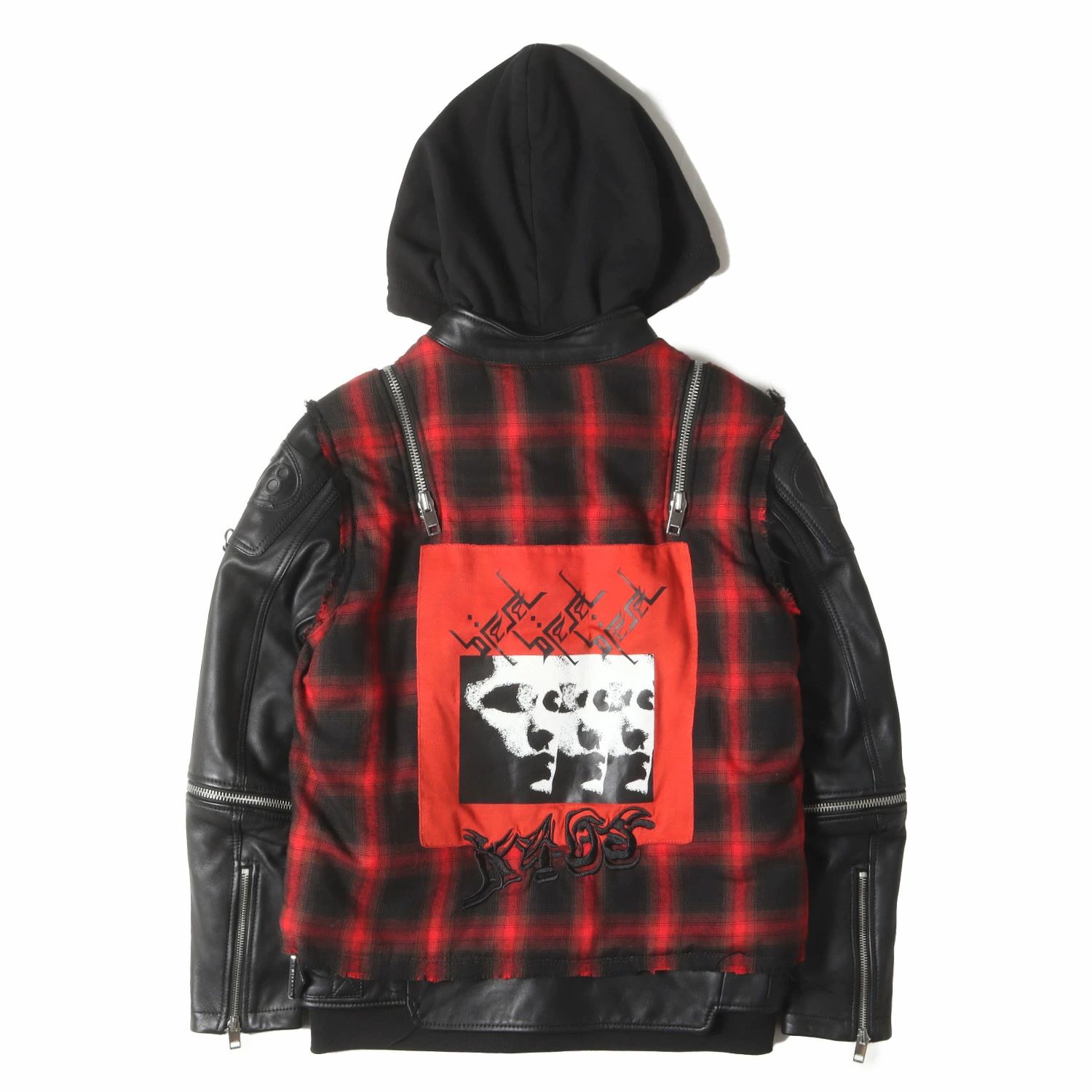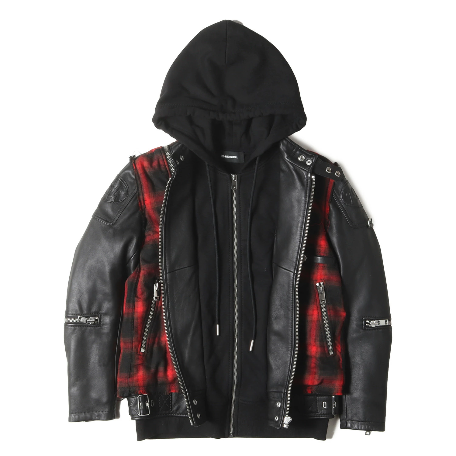 DIESEL Jacket in Black and Red, Size XS | Reconstructed Sweatshirt Hooded Leather Rider's Jacket (L-NORMAN) | Men's Outerwear, Blouson, Pre-owned, K4616