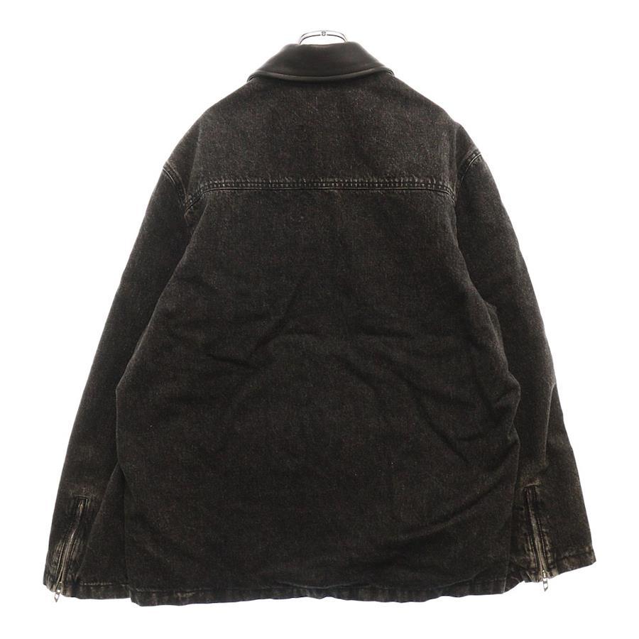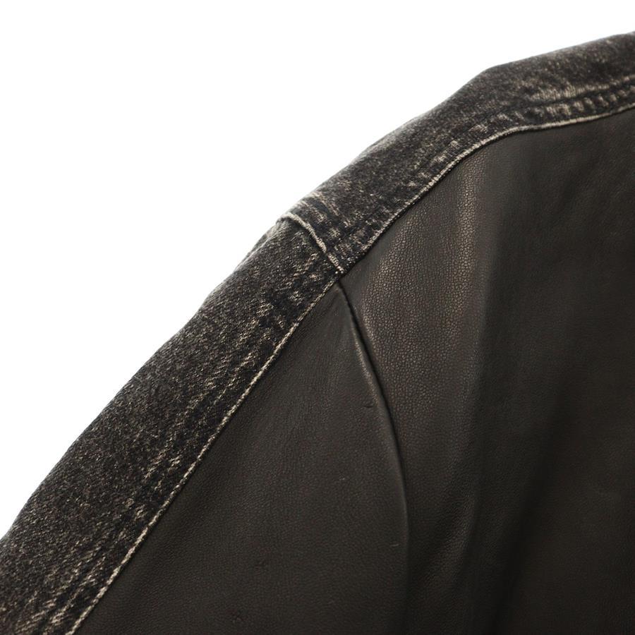 [モデル]L-STOLLER レザー デニム 切り替え ジャケット ブラック