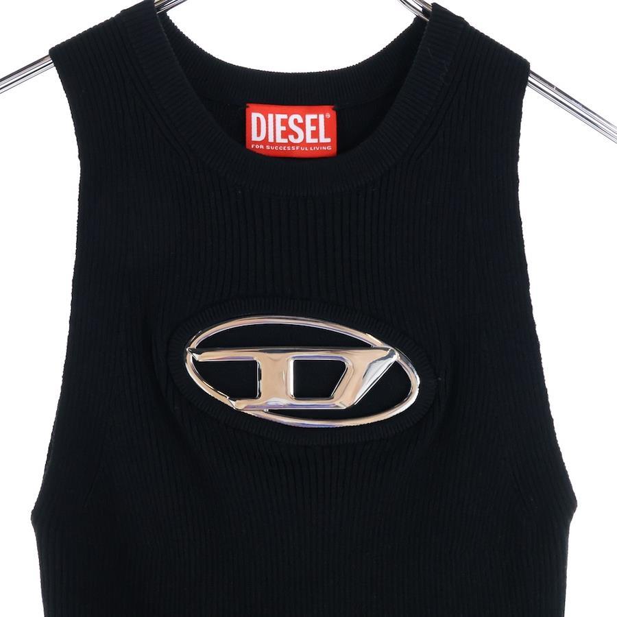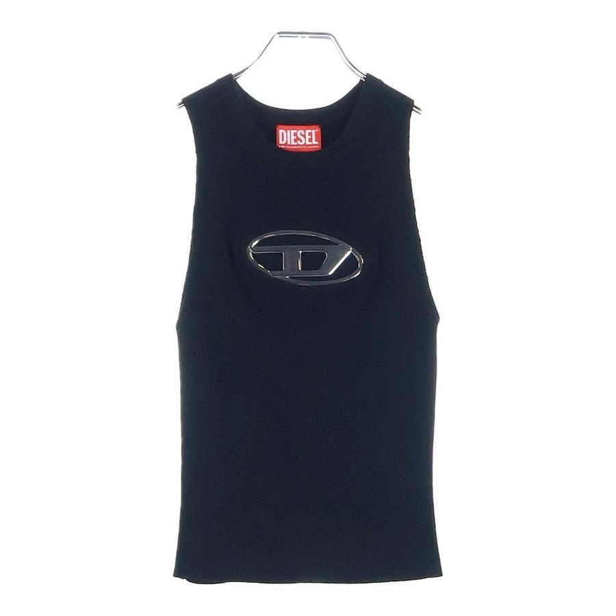 [モデル]M-ONERVA-TOP オーバルDメタルロゴプレート クルーネック ノースリーブ リブニット タンクトップ セーター ブラック レディース 0DLAX