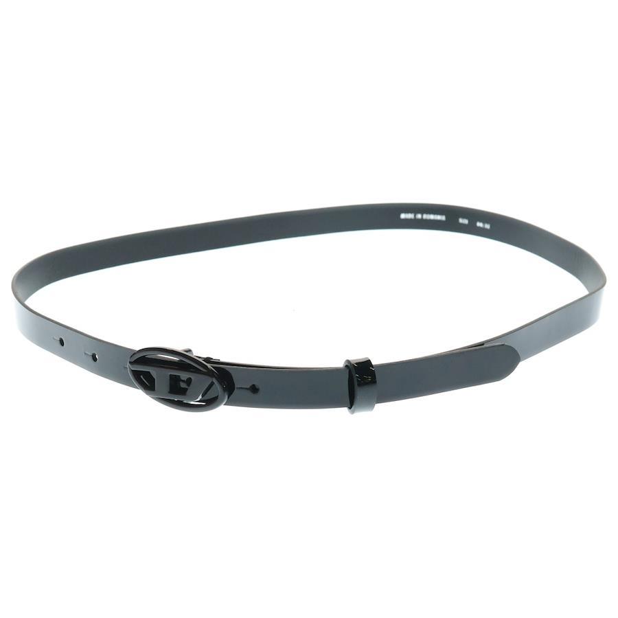 [モデル]スモールDロゴバックル パテントレザー エナメル ナローベルト ブラック