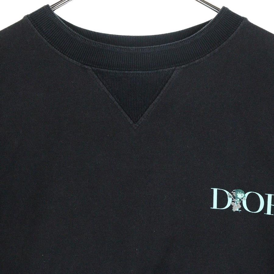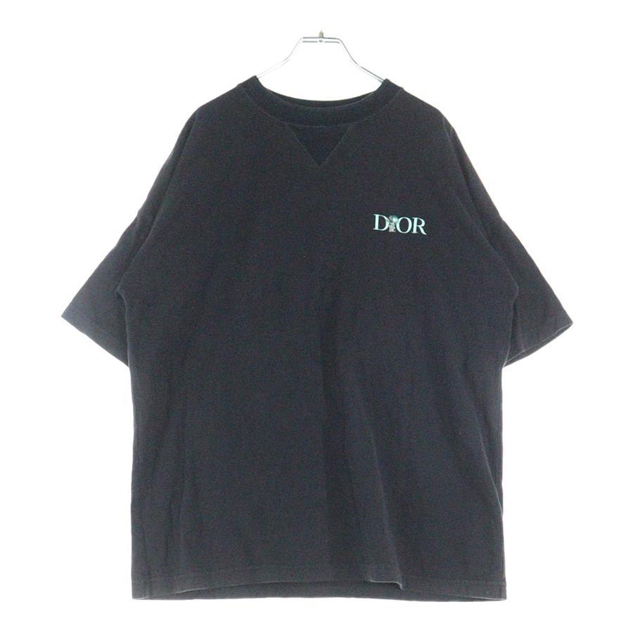 [モデル]22AW バックフラワー刺繍 ロゴプリント クルーネック 半袖Tシャツ ブラック 243J685A0677
