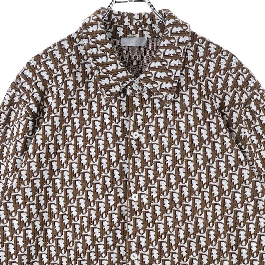 [モデル]20SS OBLIQUE OVERSHIRT オブリーク総柄 コットンニット オーバー長袖シャツ ブラウン 023M550AT099