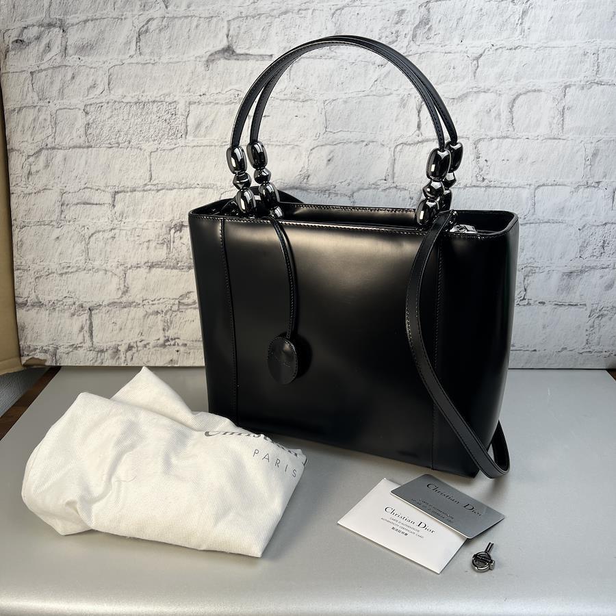 【アイテム】美品 Dior クリスチャンディオール マリスパール パテントレザー ショルダーバッグ ブラック A-9837